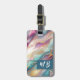 Add color and style to your travel accessories with this stunning luggage tag featuring a teal, aqua, blue, purple, pink, and gold colored marble waves art pattern. This eye-catching design will make your luggage stand out from the crowd and express your unique personality. You can easily customize this luggage tag with your monogram or initials on the front, and name, home or business address, phone number, and email on the back. This luggage tag is made of durable acrylic with a leather strap and a metal buckle, ensuring it will last through many trips and adventures. Whether traveling for business or pleasure, this luggage tag is a must-have accessory that adds flair and fun to your journey.