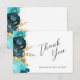 Teal Aqua Gold Floral Wedding Flat Thank You Karte