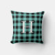 Teal Black Buffalo Plaid Monogram Holiday Kissen