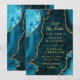 Teal Blue and Gold Agate Marble Save The Date Einladung