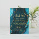 Teal Blue and Gold Agate Marble Wedding Dankeskarte