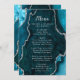 Teal Blue and Silver Agate Marble Wedding Menükarte