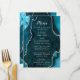 Teal Blue and Silver Agate Wedding Menu Menükarte