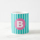 Teal Blue Vertical Striped Pink Circle Monogram Kaffeetasse
