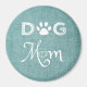 Add hat Touch to your kitchen with an Teal Burlap Dog Mom Magnet. Magnet design feature a teal burlap background with Dog Mom adorned with a paw print and fancy heart. Additional gift items with this design as well a variety of colors