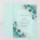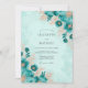 This design features a serene mint background adorned with vibrant teal anemones and delicate copper-toned leaves. The watercolor floral arrangements create a romantic and sophisticated atmosphere perfect for a seasonal event. The cool tones of the turquoise petals contrast beautifully with the warm metallic-inspired foliage for a unique botanical aesthetic.