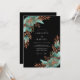 A sophisticated display of teal and copper botanical elements creates an elegant atmosphere. Delicate floral clusters and leafy branches offer a luxurious feel against a dark backdrop. This design evokes a sense of refined beauty and natural opulence.
