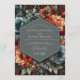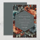 Embrace a dramatic and opulent aesthetic with this stunning floral composition. A breathtaking bouquet of lush blooms in deep teal and rich burnt orange emerges from a shadowy, dark background. Accents of coppery tones and delicate grey-green buds add depth and texture, evoking a sophisticated and moody atmosphere perfect for an elegant autumn affair.