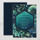 Embrace a dramatic and elegant aesthetic with this stunning botanical design. A rich palette of deep sapphire blue, vibrant teal, and lush green sets a moody tone. Artfully arranged succulents and foliage, highlighted by delicate golden-hued accents, create a sophisticated atmosphere for your special day.
