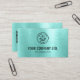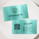 This custom business card design features a vibrant brushed metallic teal background, offering a fresh and contemporary aesthetic. Your personalized logo and company information are elegantly displayed on the front in a crisp dark font, complemented by a neatly organized array of contact details and a QR code on the reverse. This striking design ensures your brand makes a memorable and modern statement.