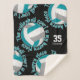 Diese niedliche Sherpa-Fleecedecke zum Thema Volleyball enthält 5 zufällig arrangierte aquamarine, graue und weiße Volleybälle mit dem Text "Der Volleyballplatz ist mein Happy Place" in aquamariner Umkreisung jedes Volleyballs in einem lustigen typografischen Schriftart, alles auf schwarzem Hintergrund - ihr Name und die Jerseynummer sind individuell einstellbar - von katz_d_d_d_zynes