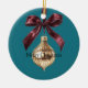 Teal Green Burgundy Bow Gold Ornament Christmas