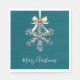 Teal Green Cream Bow Silver Snowflake Serviette
