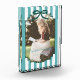 Teal green graduation with trendy stripes and ribbon bow. Photo template via Pixabay licensed under CC0 and must be replaced with your own photo.