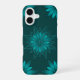 Teal Leaf Mandala Design on Dark Cyan iPhone 16 Hülle