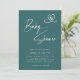 This modern baby shower invitation features elegant hand-lettered script on a soft muted teal background with a sweet heart footprint accent. The back design includes space for a photo or additional details, creating a timeless and personal way to invite loved ones to celebrate your growing family.