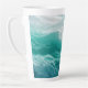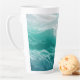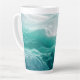 The image shows a close-up view of ocean waves. The water is a gradient of teal and white, with the darker teal at the bottom transitioning to lighter shades and white at the top. The waves are textured and appear to be in motion, creating a dynamic and visually appealing scene. The overall mood is serene and calming, evoking a sense of the ocean's power and beauty.