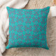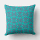A vibrant retro-inspired pillow featuring a teal and hot-pink geometric pattern.