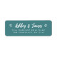 A modern and charming teal return address label designed for couples who love a warm, personal touch. This design features playful handwritten-style names accented with sweet heart details, paired with clean white address text on a rich teal background. The long rectangular format is ideal for envelope addressing and adds a polished yet relaxed look to your mail.
