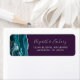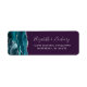 The left-hand edge of this elegant modern wedding return address label features a teal watercolor agate border trimmed with faux silver glitter. The customizable text combines handwriting script and copperplate font in silver gray on a purple background.