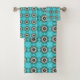 teal towels featuring a black and white geometric badhandtuch set