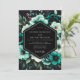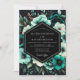 Embrace a dramatic and romantic atmosphere with this moody botanical design. A captivating arrangement of lush, painterly florals in vibrant teal and soft ivory contrasts beautifully against a deep charcoal background. This opulent composition is woven with delicate greenery, creating an elegant and mysterious aesthetic for your special day.