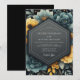 An artistic arrangement of lush teal blossoms and vibrant yellow blooms with dark leafy accents. The rich, watercolor-inspired palette evokes a feeling of opulent romance and natural beauty, perfect for a sophisticated affair.