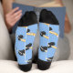 Personalisierte Baseballsocken mit Fußballgrafik (Helm und Fußball), plus Text. Hintergrund ist in hellblau dargestellt, Socken können jedoch beliebig farbig sein. Wählen Sie Farbe an der Eingabeaufforderung bearbeiten / personalisieren aus. Entworfen von HAMbyWhiteGlove alias HAMbWG. Wird mit weißem Text angezeigt.