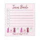 Im Notepad Design wird eine originelle Illustration von Brautparty-Kleider (Brautmädchen, Blumenmädchen, Brautmutter, Braut) mit TEAM BRIDE in einem lustigen Schriftart gezeigt. Persönlich gestalten Sie Ihre Hochzeitsinformationen einfach. Viele zusätzliche illustrierte Notizblöcke sind auch in diesem Shop erhältlich. Dieses Design ist auch auf anderen Produkten erhältlich. Sehen Sie nicht, wonach Sie suchen? Brauchen Sie Hilfe bei der Anpassung? Kontaktieren Sie Rebecca, um etwas für Sie entworfen zu haben.