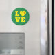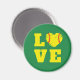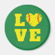 Vintag inspiriert Retro-"Liebe"-Magnet mit einem Softball-Herzsymbol in der Mitte des Wortes "LIEBE" in Gelb und Grün, perfekt als Teamgeschenk, Coach Dankeschön, oder Baseball oder Softball Thema Geburtstagsparty Gunst. Ideal für Auszeichnungen für Übernachtungen und kleine Geschenke für den Baseballtrainer oder den Softballspieler.