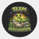 A cheerful, whimsical illustration of a cute grasshopper mascot celebrating teamwork, positivity, and playful nature vibes.