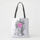 Die weiße Tasche "Hoch ein Glas auf Team Jalta" weist eine weiße Vorder- und Rückseite mit rosa und schwarzem Text auf.