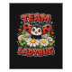 A cheerful cartoon ladybug perched on bright daisies with bold playful lettering celebrating team spirit and love for cute garden creatures.