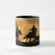 Seilzüge mit Lenker bei Sonnenuntergang oder Sonnenaufgang. Eine großartige Western Cowboy-Tasse.