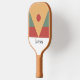 Ein Pickleball-Paddel, das Sie Team Name, Est hinzufügen können. Jahr und Name des Spielers auf der Vorderseite, in einem geometrischen Muster von grün, orange und weiß