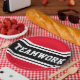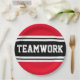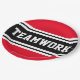 Dieses sportliche, sportliche Design zeichnet sich durch feinen TEAMWORK-Text in einem farblich hervorgehobenen breiten schwarzen Streifen mit doppelweißen Rennstreifen gegen leuchtend rote Außenstreifen aus. Der Text in diesem Design kann personalisiert sein.