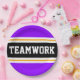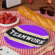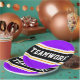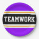 Dieses sportliche, sportliche Design mit feinem TEAMWORK-Text in einem farbenprächtigen, schwarzen Streifen mit doppelweiß und gelb orangefarbenen Rennstreifen gegen lila äußere Streifen. Der Text in diesem Design kann personalisiert sein.