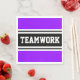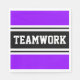 Dieses sportliche, sportliche Design zeichnet sich durch feinen TEAMWORK-Text in einem farblich hervorgehobenen breiten schwarzen Streifen mit doppelweißen Rennstreifen vor lila Hintergrund aus. Der Text in diesem Design kann personalisiert sein.