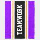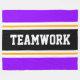 Dieses sportliche, sportliche Design mit feinem TEAMWORK-Text in einem farbenprächtigen, schwarzen Streifen mit zwei weißen und gelben Rennstreifen gegen lila, helle Außenstreifen. Der Text in diesem Design kann personalisiert sein.
