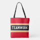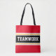 Dieses sportliche Design beinhaltet sportlichen TEAMWORK-Text in einem farblich hervorgehobenen, breiten schwarzen Streifen mit doppelweißen und gelben Rennstreifen und leuchtend roten hintergrundgelben Streifen. Der Text in diesem Design kann personalisiert sein.