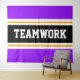 Dieses sportliche, sportliche Design mit feinem TEAMWORK-Text in einem farbenprächtigen, schwarzen Streifen mit zwei weißen und gelben Rennstreifen gegen lila Außenrand-Streifen. Der Text in diesem Design kann personalisiert sein.