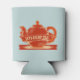 Ein lustiges Design für jeden, der Lieben hat, sich mit Freunden zu treffen und Tee zu trinken. Eine Vektorgrafik eines Teekopfes mit einem Band, das um ihn herum gewickelt ist. Der Text auf der Schleife liest, lasst uns zusammenkommen und Tee schlürfen.
