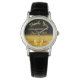 Uhr, Klassische Damenuhr mit schwarzen Lederarmband