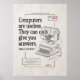 Dieses Kunstwerk im Vintagen Stil der 1980er Jahre verbindet ein schlaues Technologiekonzept mit dem zeichn eines fiktionalen PCs und eines hybriden Displays. Im Text steht: "Computer sind nutzlos. Sie können Ihnen nur Antworten geben." Eine tolle Geschenkidee für Geeks, Programmierer, Technikprofis und alle, die sich für Technologie interessieren. Erstellt von Piotr Kowalczyk & AI © First publiziert: 12.03.2024.