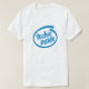Techie innerhalb des hellfarbigen T - Shirt mit blauem Entwurf.