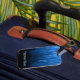 Dieses High-Tech Gepäckanhänger hat einen kräftigen Techno-Blau-Regen auf Ihrem personalisierten Namen. Es blickt direkt aus dem Cyberspace mit seinem futuristischen, technologisch abstrakten Design.