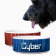 Die personalisierte Bezeichnung Ihres Hundes in weißem Cyber-Print-Readout wird in der lebendigen Techno-Blau-Schüssel auf dem Futter oder Wasser abgelegt. Es blickt direkt aus dem Cyberspace mit seinem futuristischen, technologisch abstrakten Design.