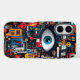 Kühne Linien, glänzende Muster und ein graffiti-inspiriert Schlamassel von Retro-Gadgets prägen diesen lauten und stolzen Handykoffer. Ein Muss für Tech-Rebellen.