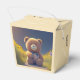 In dieser Gefälligkeitsbox befindet sich ein knuddeliger Teddybär inmitten einer Wiese von Blume gegen den Himmel des Abends. Adorable Gefälligkeitsbox für Ihre Gäste. Geeignet für Babydusche, neues geborenes Baby, Kindergeburtstag und mehr! Text anpassbar. Meine Idee, generiert mit KI.