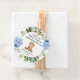 Teddy Bär blaue Blumengrün Babydusche Geschenkanhänger